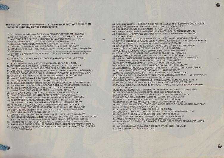 A Xertox csoport (Swierkiewicz Róbert, Lévay Jenő, Regős István) felhívására 77 magyar és külföldi művész készített egy-egy munkát, ezeket tartalmazza a mappa.